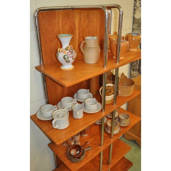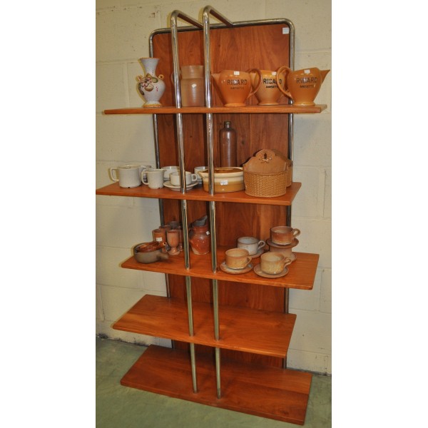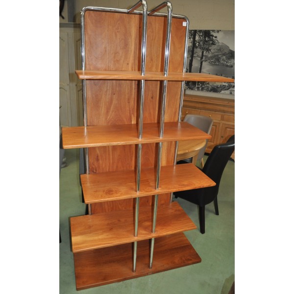 Etagère bibus style industriel bois et acier inox chromé. Fabrication artisanale.