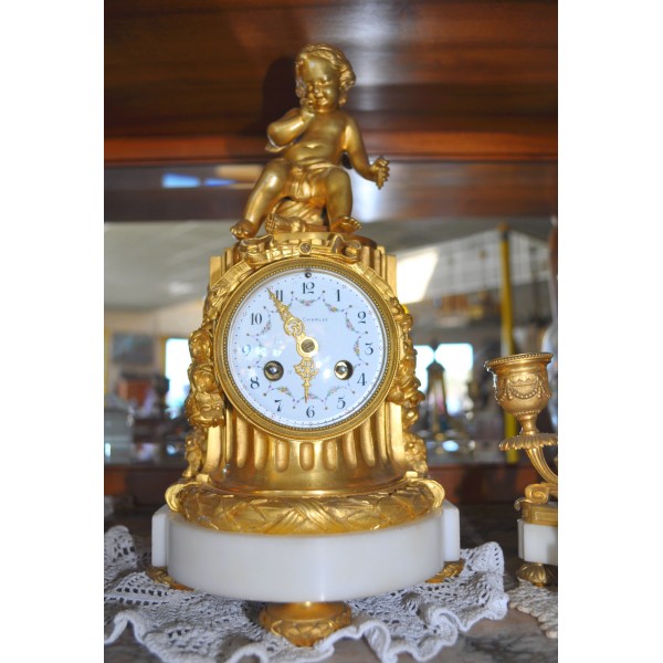 Pendule ancienne "Cupidon" en bronze doré à deux feux